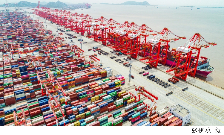 图为洋山深水港。(贵寓相片 文陈述记者张伊辰 摄)