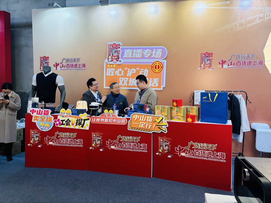 {jz:field.toptypename/}31日上昼,透过EKA天物空间创意园铜堡空间的玻璃幕墙,冬日的阳光洒在充满当代经营感的展陈上,“广货行寰球·中山百货进上海”行动郑重开幕。上昼10时刚过,主会场内已集结了不少前来探营的上海市民,来自中山的智能机器东说念主、精细灯饰、特质食物等展位前,市民或体验互动,或回味风度,或权术洽谈,深度感受“广货”盛宴。
