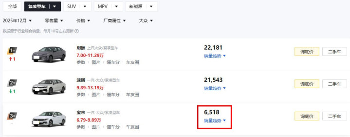 终末,一汽-各人宝来昨年12月份在国内的销量是6518辆,相较于上汽各人朗逸,那着实是不成等量皆不雅。而粗犷也恰是因为销量上的捉衿肘见,这才有了此番新车官降的这一转为。