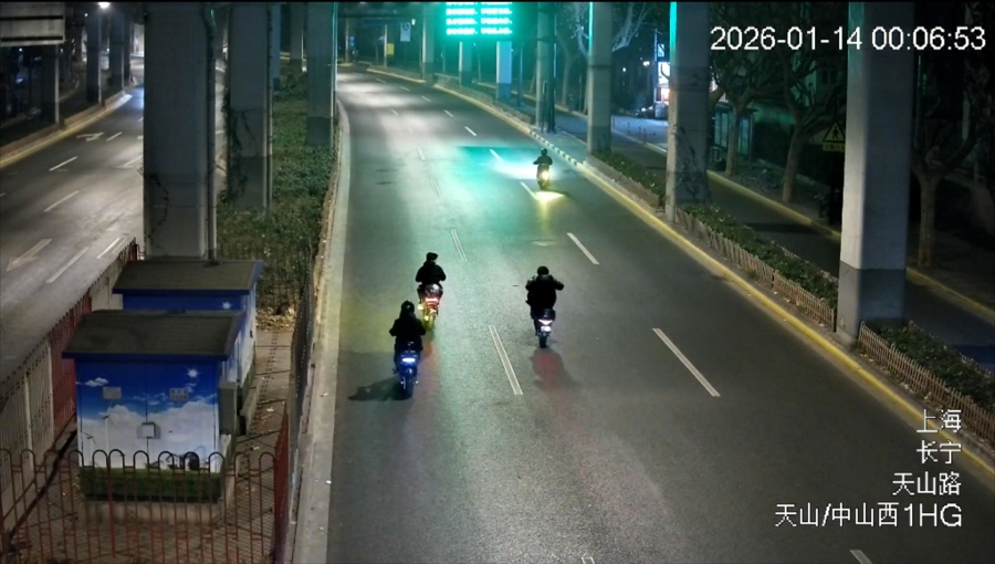 1月13日23时许,长宁区中山西路一带出现慌乱一幕,多东说念主驾驶电动自行车在活泼车说念上组队竞速、松懈变说念,致使作念出翘头炫技、闯红灯等危境步履。接到举报后,长宁公本分局交管支队立即会同属地天山路派出所成就专案组伸开探询。