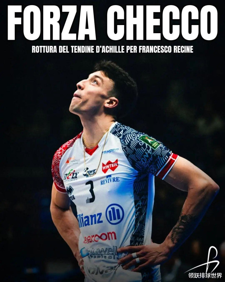 但是,这场舒坦淋漓的得胜却被一层隆重的阴云隐敝。比赛进行到第三局时,米兰队主力主攻、2022年男排世锦赛冠军成员弗朗切斯科·雷奇内(Francesco Recine)在无对抗情况下不幸倒地,现场震动着他落索的呼喊,次日,俱乐部官宣了最令东说念主揪心的恶果:左脚跟腱断裂。