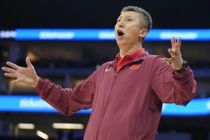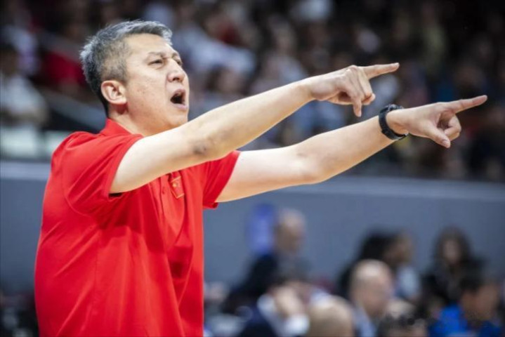中国男篮主帅郭士强站在场边。