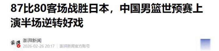 极目新闻——87比80客场驯服日本,中国男篮世初赛演出半场逆转好戏