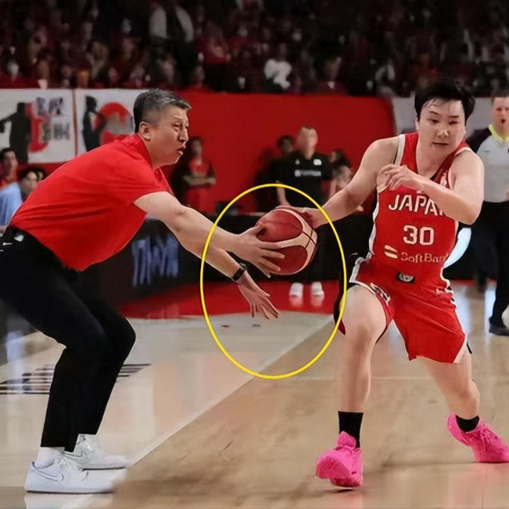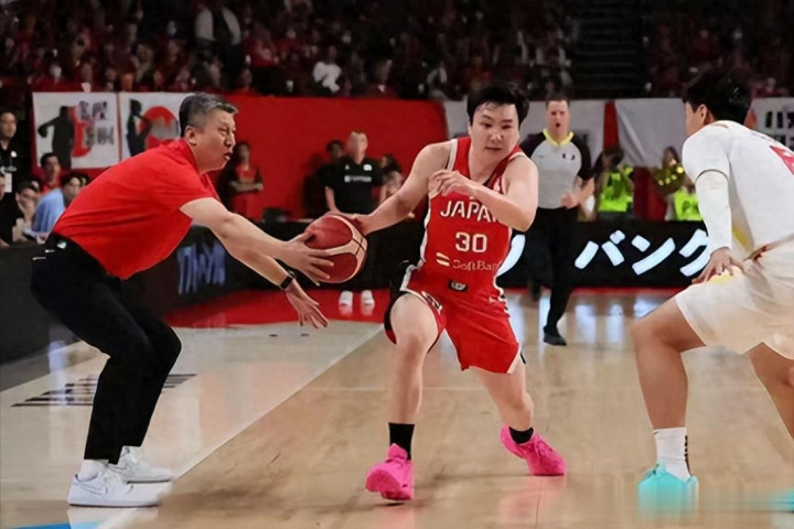 指尖刚好蹭到了日本队后卫富永启生正在运球的轨迹。