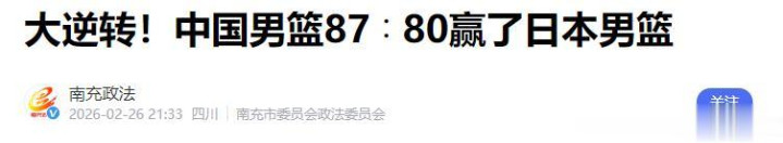 南充政法——大逆转!中国男篮87∶80赢了日本男篮