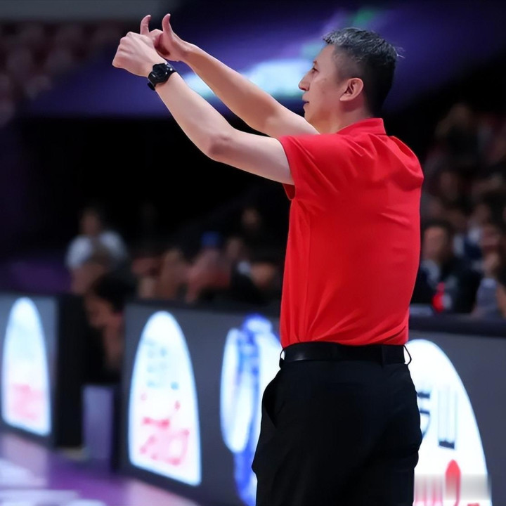 郭士强因指挥而伸出的手臂,其指尖恰好与运行的篮球发生了隐微战役。