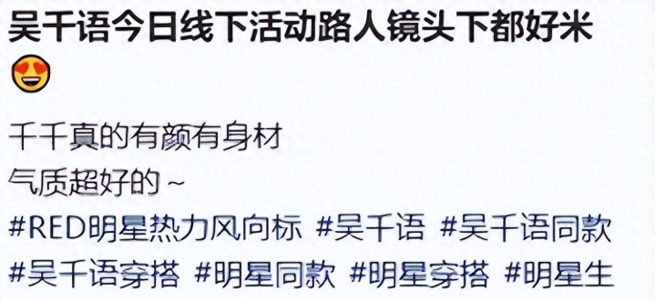 吴千语的身上是有我方气场和底气在,看起来便是很自信,给东说念主嗅觉也适意,好意思得和周围有壁,让东说念主移不开眼。