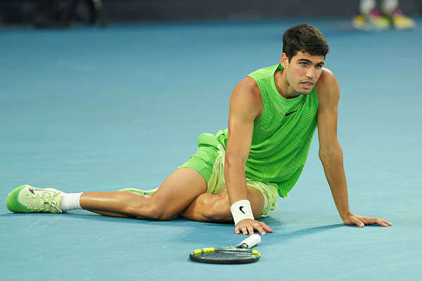 5小时27分钟,这场耗时创下澳网半决赛时长记载的对决,也成为史上最动魄惊心的逆转战之一。阿尔卡拉斯顶着严重的身体不适,苦战五盘以6比4、7比6、6比7、6比7、7比5打败兹维列夫,劳动生计初次闯入澳网决赛。