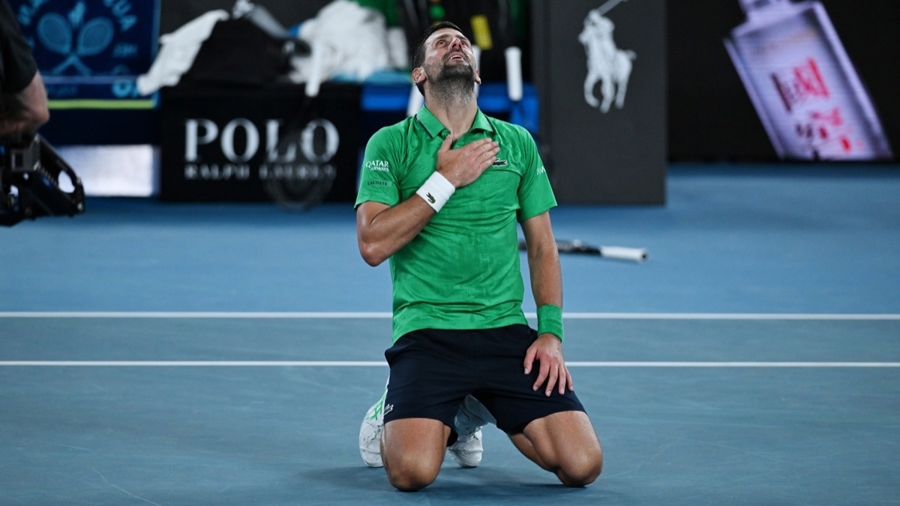 新华社像片,墨尔本(澳大利亚),2026年1月30日\n 1月31日,焦科维奇庆祝得手。\n 当地技艺1月30日,在澳大利亚墨尔本进行的2026年澳大利亚网球公开赛男单半决赛中,塞尔维亚选手焦科维奇3比2战胜意大利选手辛纳,晋级决赛。\n 新华社发(王申摄)