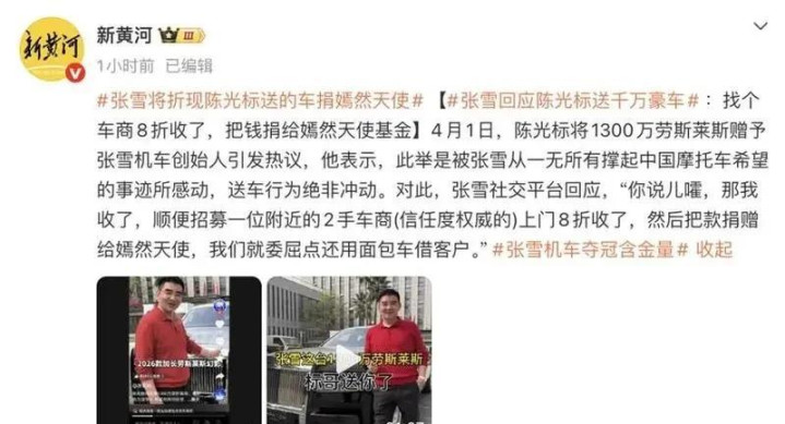 当湖南机车手张雪辞全国赛场发奋冲线、斩获冠军的音问刷屏全网,属于中国速率的荣光,在多半国东谈主心中燃起了滚热的骄气。而随之而来的连锁暖隐痛件——企业家陈光标赠予千万劳斯莱斯、张雪断然将豪车变卖转捐,却在网络上掀翻了一场沸沸扬扬的争论:有东谈主质疑陈光标是借热度造假博眼球,有东谈主推测张雪是刻意立“正能量东谈主设”,多样噪音甚嚣尘上,仿佛一件本该缓和东谈主心的义举,非要被拆解成充满总共的利益博弈。