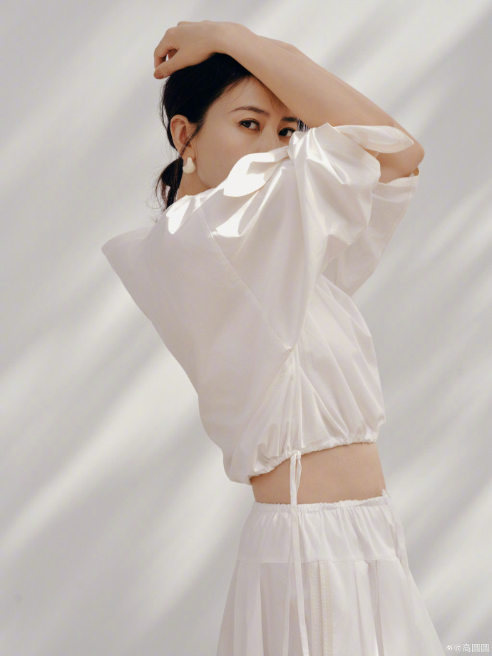 若是说高圆圆上头的这款酒红色缎面长裙成为红毯女王,那么底下这款白色分局面连衣裙的穿搭又给东谈主一种气质女主范,可看成生计常常穿搭的模版。