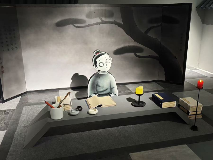 在这个千里浸式空间里,《乡村巴士带走了王孩儿》《林林》《小满》《小雪》《本日动物园》《拜山》《三郎》《大鸟》《刑天》等十余个奇谭故事都化作一个个热诚容器,或幽暗如内心耳语,或柔顺如童年回想。动画中那些未能言尽的留白,在这里成为可驻足、可浸入的物理空间。