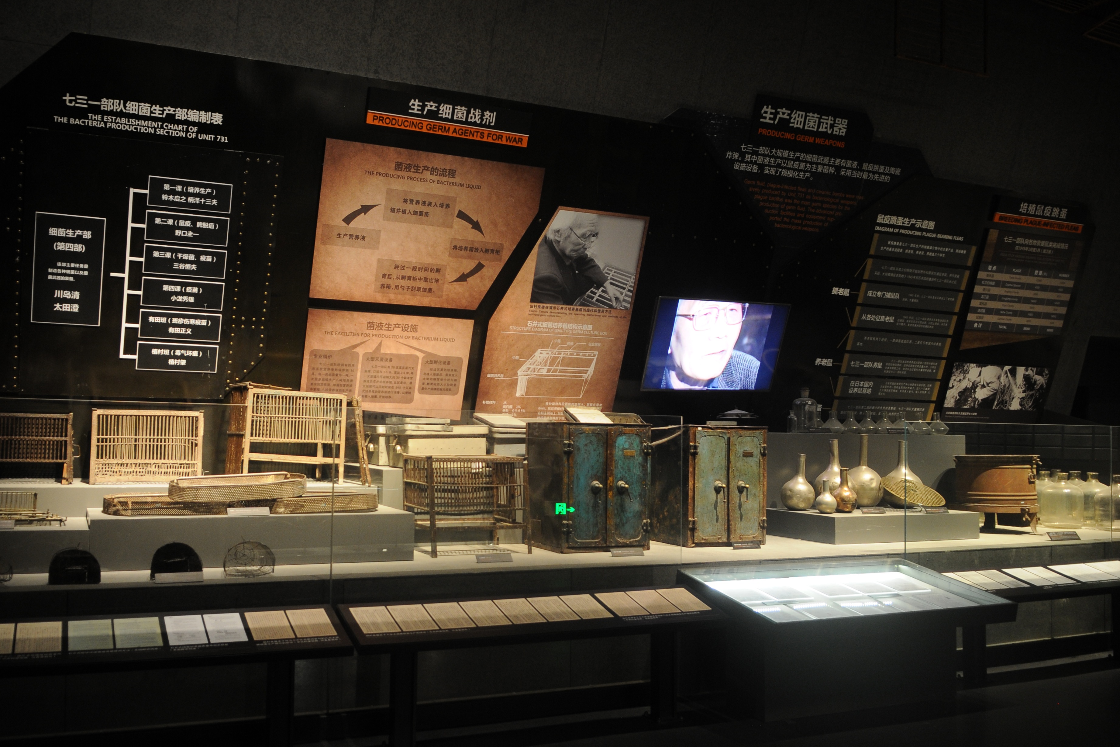 侵华日军第七三一戎行罪证成列馆内展出的鼠疫菌跳蚤参谋执行场景。新华社发佐藤秀男还供述了731戎行进行细菌火器坐褥的情况。戎行内设制造厂进行细菌增殖,将温室设定为37摄氏度,把培养罐内的细菌遗弃24小时或48小时。增殖后的细菌可通过飞机撒播,或制成固体物插足河水稠浊水源。