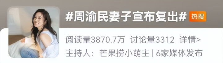 比如最近周渝民的老婆喻虹渊文告复出,热搜只字未提她的名字,而是用“周渝民老婆”算作名称。