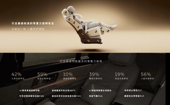 以致于针对第二排的高优先级,标配了二排远端安全气囊,以及给零重力坐姿提供安全冗余的一系列假想,让二排的安全所有这个词杰出传统旗舰级 SUV。